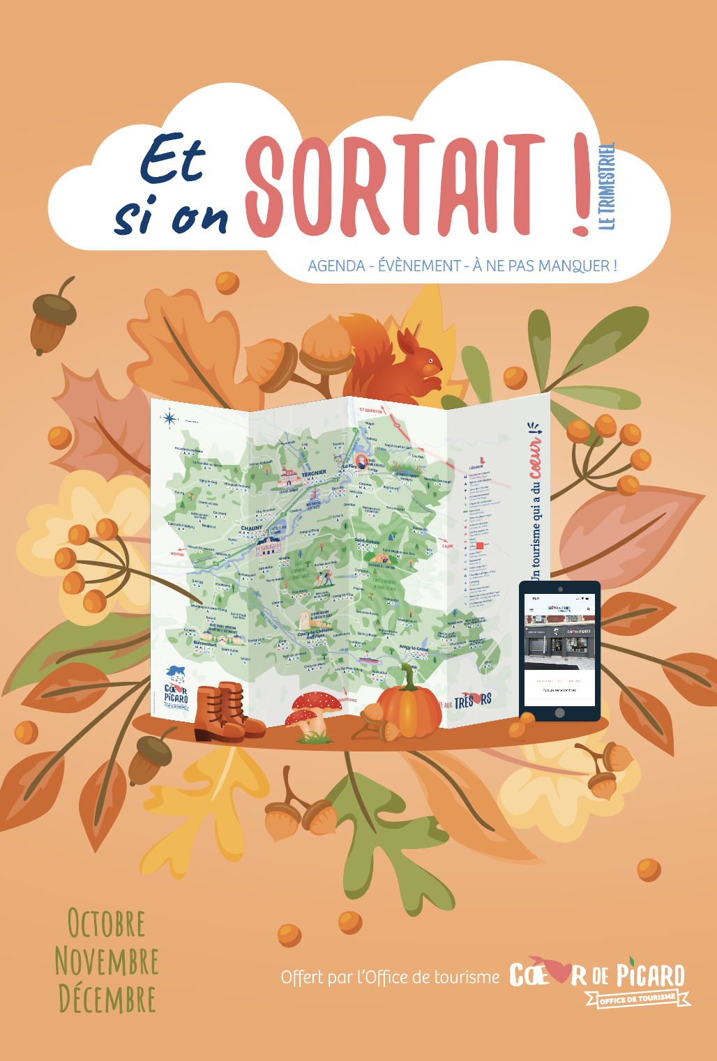 L’Office de Tourisme Cœur de Picard est fier de vous présenter notre quatrième brochure : Et si on sortait ! le trimestriel. Ce livret de 40 pages est conçu pour recenser l’ensemble des fêtes et manifestations se déroulant sur la destination Cœur de Picard, qui regroupe 84 communes entre la Communauté d’Agglomération Chauny-Tergnier-La Fère et la Communauté de Communes de la Picardie des Châteaux.