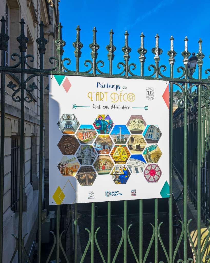 Panneau conscré à Chauny avec les oeuvres de Raphaël Lardeur. Crédits photos : P.Goujard et OT Coeur de Picard