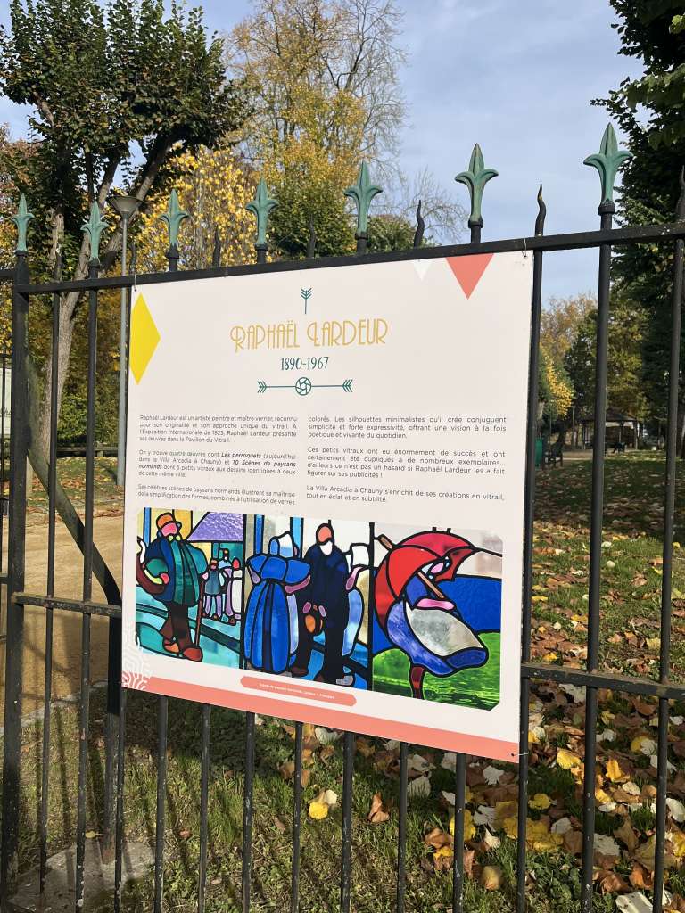 Vous pourrez y admirer le panneau consacré à Chauny et la mise en lumière de Raphaël Lardeur (1890-1967), artiste peintre et maître verrier, se distingue par son style original et sa vision moderne du vitrail.
